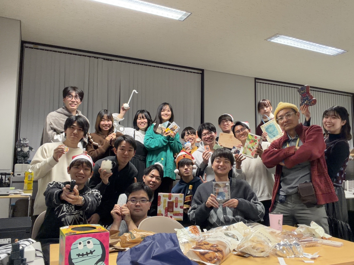 まずはクリスマスパーティーがありました.クリスマスパーティーでは磯部さんがいるおかげで安く買える唐揚げや,カップケーキがありました.そしてなんといっても楽しみなプレゼント交換会もしました.プレゼントは個性が出ていてとても面白かったです.