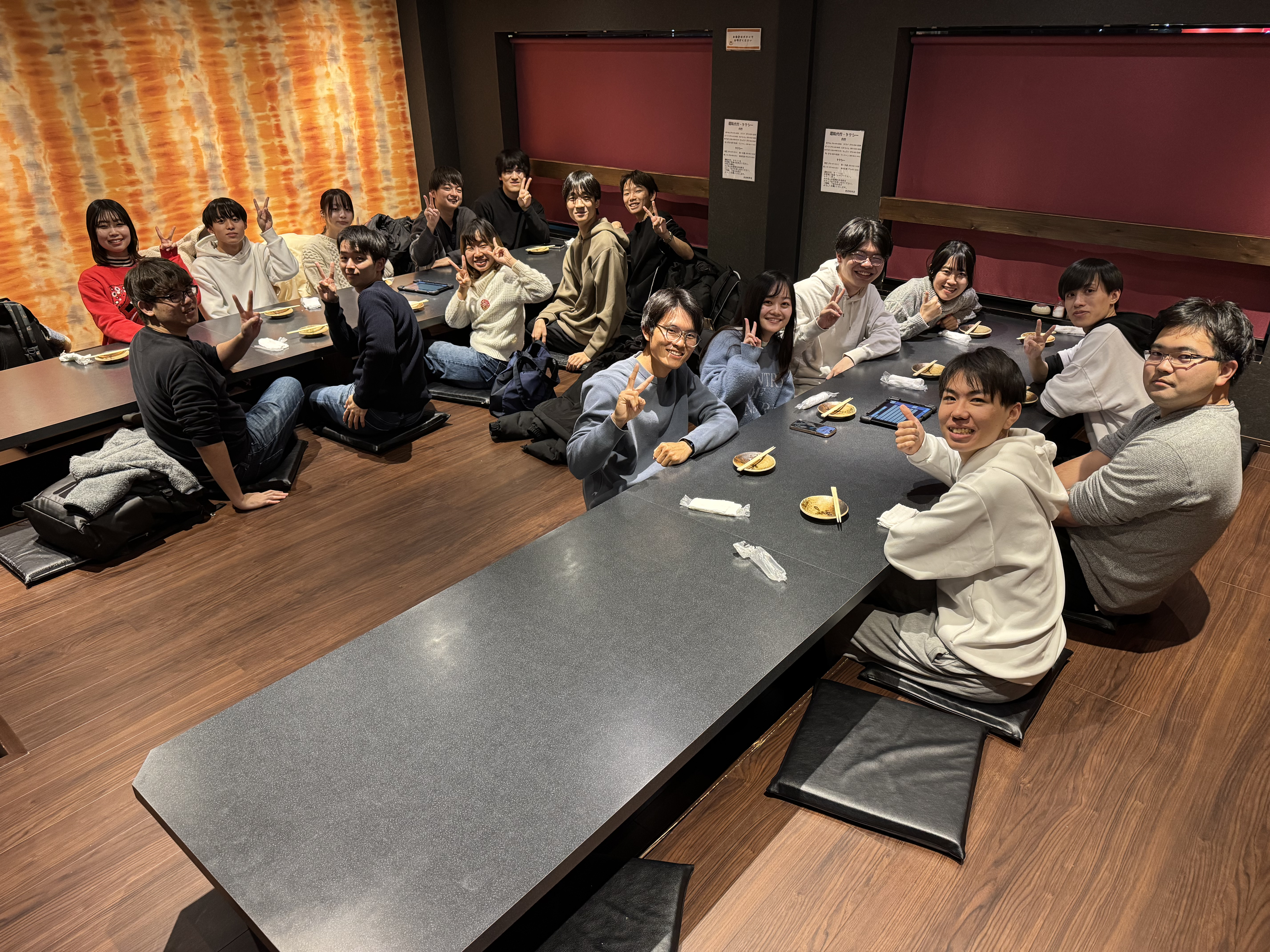 そして,本日12月26日に今年最後のフジ住宅本社での進捗報告会がありました.残念ながら柴谷くんは欠席でしたが,行けるメンバーでその後に飲み会に行きました.先生含めて少人数で飲み会があると色々な先生のお話しが聞けるのでためになりますね.第二回目の小忘年会みたいで楽しかったです.