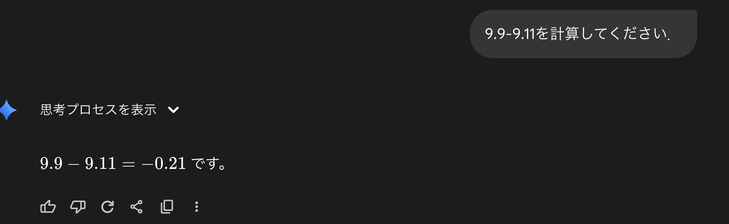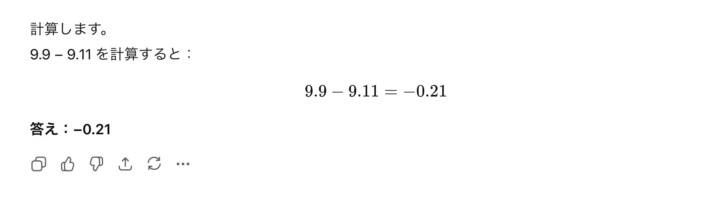 違うと指摘したり,Chain of Thoughtなどを使ったりするとちゃんと結果がでてきましたが.